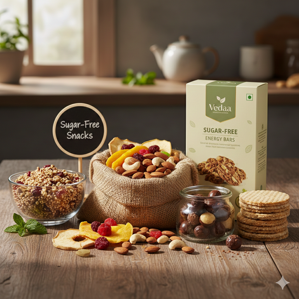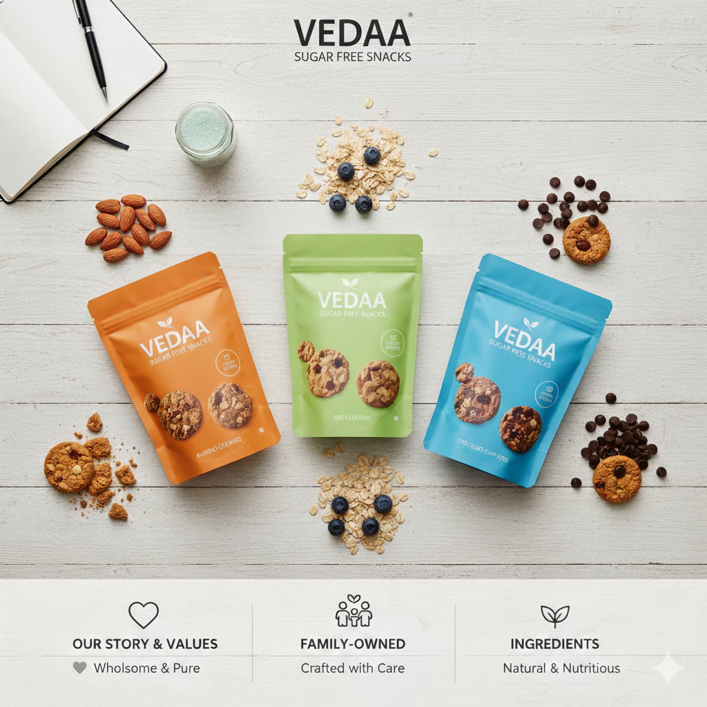 At Vedaa Snacks, we are committed to providing sugar free foods that are made from high-quality, natural ingredients. Every snack reflects our mission to help you live a healthier, sugar-conscious lifestyle without sacrificing flavor.